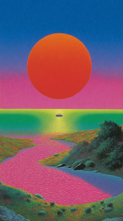 Ilustraciones psicodélicas de cosas naranjas y verdes